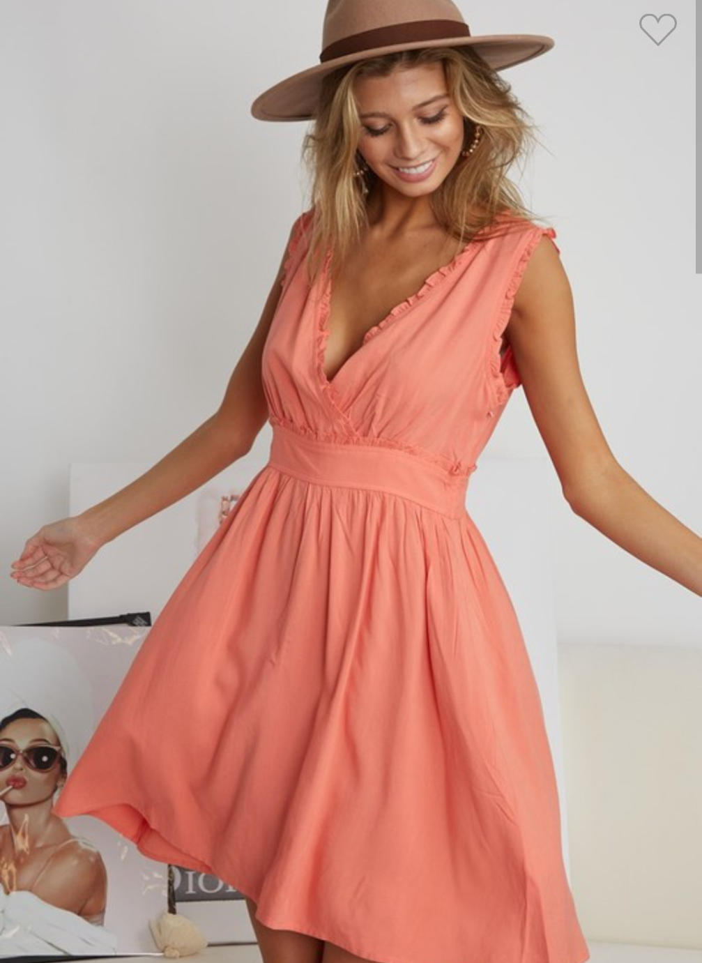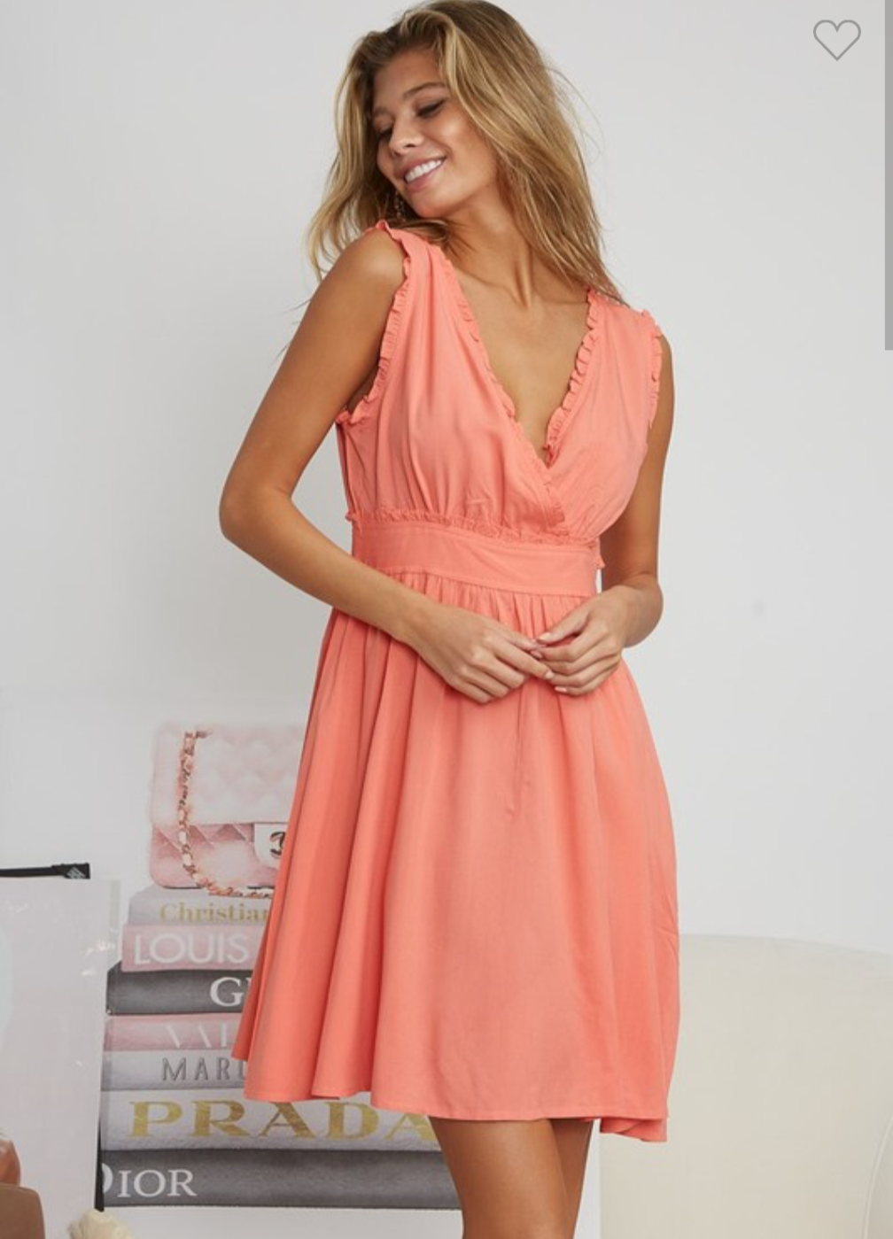 Ruffle Edged V-Neck Mini Dress